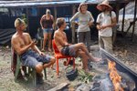Бразильский капитан, таитянская француженка-ныряльщица и чешская капитанская дочка. А еще Жюль Верн, мечта и Тайна Тихого океана. Посиделки у костра до утра Были мы, как будто брат и сестра. А расстались так беспечно легко. — Далеко ли ты живешь? Далеко. (Юрий Зыков) Где самая сильная концентрация колоритных персонажей и историй? В международных альпинистских и туристических лагерях и на якорных стоянках далеко от Европы. Наш костер горел на забытом богом восточном берегу Фату-Хива. Я могу по пальцам пересчитать дни, когда мы сиживали у костра в компании с друзьями-знакомыми. Истории их жизни, как экзотические цветы, вплетаются в канву нашего плавания. На архипелаге Лас Перлас мы пекли рыбку с русским авиаинженером, обслуживающим вертолеты правительства Колумбии. На острове Тобаго пели у костра с семьей шведского писателя и французскими циркачами. А на Фату Хива вечеряем в заброшенной туземной деревне с Сантьяго, Кристиной и Вайолетт. ,,,,,,,,,,,..,,,,..,,,.,,,..,,,,,..,,,,,.,,,, ,.,,,,,,.,,,,,,,.,,,,,.,,,,,..,,,,,,,,,,,,,,,,,,, ,,,,,,,,,,, ..,, ,,..,, ,.,,,..,,, ,,..,,,,,.,,,,,.,,, ,,,.,,,,,,,.,,,,,.,, ,,,..,,,,,,,,,,,,,,,,,,, Кристина, 22 года, Чехия Кристина родом из Карловых Варов. 14 лет назад ее отец ушел в океан на на яхте. Мама не поддержала сей проект. А вот Кристина пару лет назад решила пожить с папой. 20-летняя капитанская дочь быстро освоила нехитрый яхтенный быт и научилась управляться с романтикой парусов. А через полгода захотела самостоятельности. Дело было в Панаме, на архипелаге Сан Блас. Она ушла работать на чартерную яхту, где через год повстречала горячего парня Сантьяго. — Мы вместе 5 месяцев, что будет дальше увидим, — говорит Кристина по-английски. С Тьяго она переходит на испанский, с Ладой немного говорит по-русски и учит ее чешским словам, а с Вайолетт старается правильно выговаривать французские предложения. ,,,,,,,,,,,..,,,,..,,,.,,,..,,,,,..,,,,,.,,,, ,.,,,,,,.,,,,,,,.,,,,,.,,,,,..,,,,,,,,,,,,,,,,,,, ,,,,,,,,,,, ..,, ,,..,, ,.,,,..,,, ,,..,,,,,.,,,,,.,,, ,,,.,,,,,,,.,,,,,.,, ,,,..,,,,,,,,,,,,,,,,,,, (Сан)Тьяго. Утром длинноволосый бразилец с фигурой Маугли выходит к океанскому прибою сделать несколько асан из йоги. Скручивает непослушные кудри в хвост и встает в горку Едва окончив школу, Тьяго как-то быстро смекнул, что в Энштейны его не тянет, а тянет к приключениям. Уронив скупую слезу на родную землю, он развернулся к Бразилии хвостом самолета и оказался где-то на атлантическом европейском берегу в обнимку с серфом. Учил скользить на волне юниоров и взрослых, окончил курсы фри-дайвинга, чтобы не загнуться на больших вонах, как-то справил итальянский паспорт и особо не парился. Семьи нет, философские книги не читал, да и вообще как-то не читал, зато был открыт всему новому. — А чего ты все серфишь да серфишь? — спросили его ребята. — Давай лучше в яхтинг, на серфе далеко не уедешь. И Тьяго без сожаления отложил серф и пошел по берегу, заглядывая в каждую лодку с вопросом: — Вам, случайно, матрос не нужен? А то я с морем на ты. Так Тьяго оказался на весьма крутой моторной яхте. Лет пять матросничал и капитанствовал по Европе, а потом вложил накопленное в симпатичный 39-футовый кэч с говорящим названием Good Run и махнул на нем в самое голубое в мире Карибское море. Среди коралловых рифов Сан Бласа их с Кристиной и накрыла любовь. Да так удачно, что они решили перейти Тихий океан. ,,,,,,,,,,,..,,,,..,,,.,,,..,,,,,..,,,,,.,,,, ,.,,,,,,.,,,,,,,.,,,,,.,,,,,..,,,,,,,,,,,,,,,,,,, ,,,,,,,,,,, ..,, ,,..,, ,.,,,..,,, ,,..,,,,,.,,,,,.,,, ,,,.,,,,,,,.,,,,,.,, ,,,..,,,,,,,,,,,,,,,,,,, Вайолет 