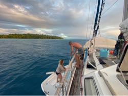 Тузик швартуем на низеньком пирсе. У пляжа лежит аккуратная куча сухих палок, будто приглашая запалить костер. Очищенная поляна между кокосовыми пальмами и деревьями макадамии. На самой высокой точке атолла (если верить табличке, 5 м над уровнем моря, но кажется, что не больше трех) 2 дома, приземистый сейчас используется как склад, и двухэтажный — основное укрытие рейнджеров, построенное в 2001 году. Об это свидетельствует каменная плита, похожая на памятник. Впрочем, памятники здесь тоже есть. Сначала два могила рейнджера, умершего здесь в 1994 году и бетонный бюст с плитой, на которой написано: «Том Нил, который жил своей мечтой на этом острове с 1952 по 1977 год.» Говорят, он написал книгу о своем робинзонстве на Суворове. А между тем в доме рейнджеров пусто. На большом графике зачеркнуты все дни, начиная с 31 января нынешнего года. Последний крест 16 октября. Мы пришли 19-го. На летней кухне куча банок с соусами, попкорном и прочими продуктами. Есть даже две полбутылки виски. В кране есть вода, на раковине стоит стакан с зубной щеткой и бритвой. На стене висит кепка, на подлокотнике дивана недопитая бутылка воды. И даже носки сушатся на прищепках. И на столе лежат пирожки, которые еще не окаменели. Такое впечатление, что так не замораживают станцию на сезон ураганов. И в голове роятся разные версии. У вас какие? Применяем дедуктивный метод, продолжение в следующем посте. Обнимаем с 13-го градуса южной широты! Наслаждаемся вечерней прохладой, продумываем план ремонта и отсыхаем после доставки воды, желаем вам тепла и света, несмотря на слякотную осень. А нам градусов на 5 бы поменьше жара. Спасибо, что вы с нами. Спасибо большущее замечательным нашим людям, пополняющим кассу экспедиции через Yoomoney и Paypal . Это так приятно! Передано по спутниковой связи из точки 15*47 ю.ш. 162*34 з.д. Где мы сейчас Смотрите на нашем сайте travely-family.com во вкладке Маршрут. Там пишется путь Леди Мэри с трекера Рокстар Иридиум 360 компании МВС Телеком.