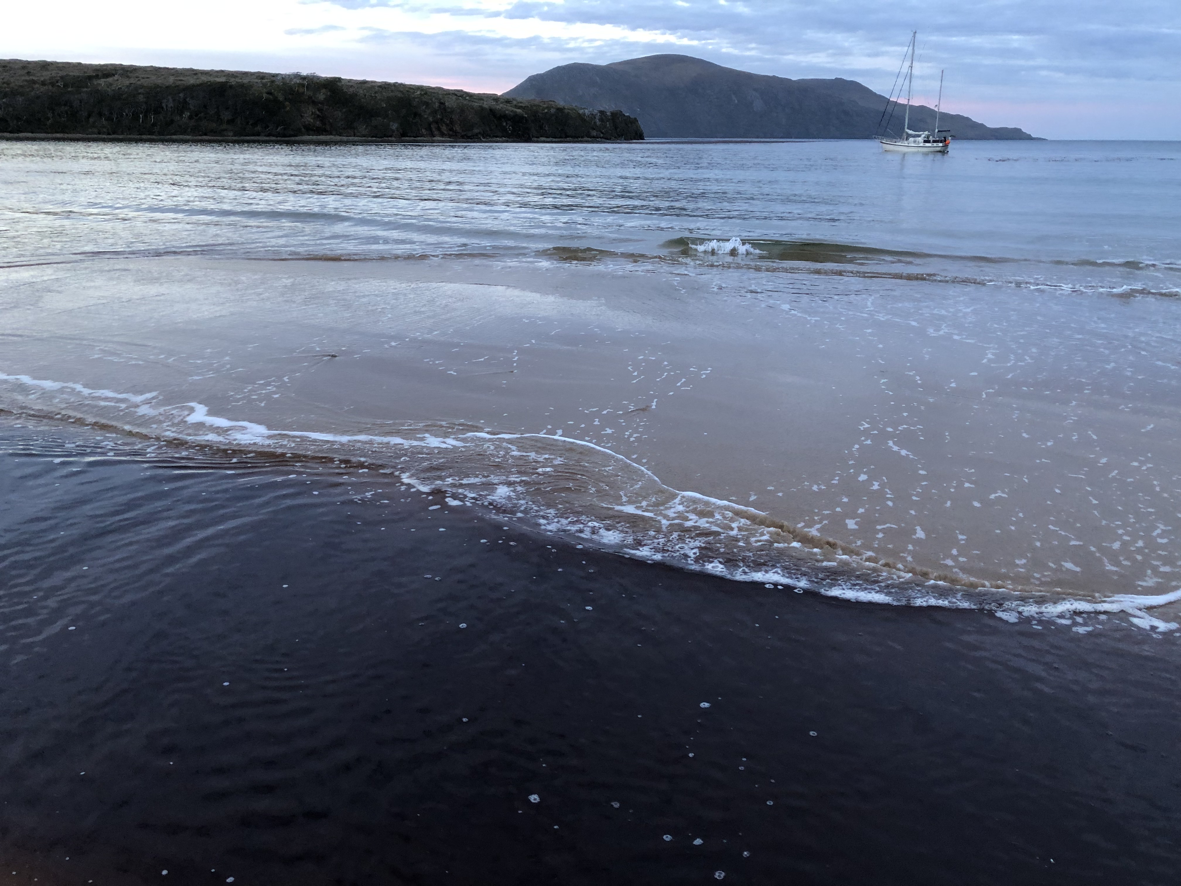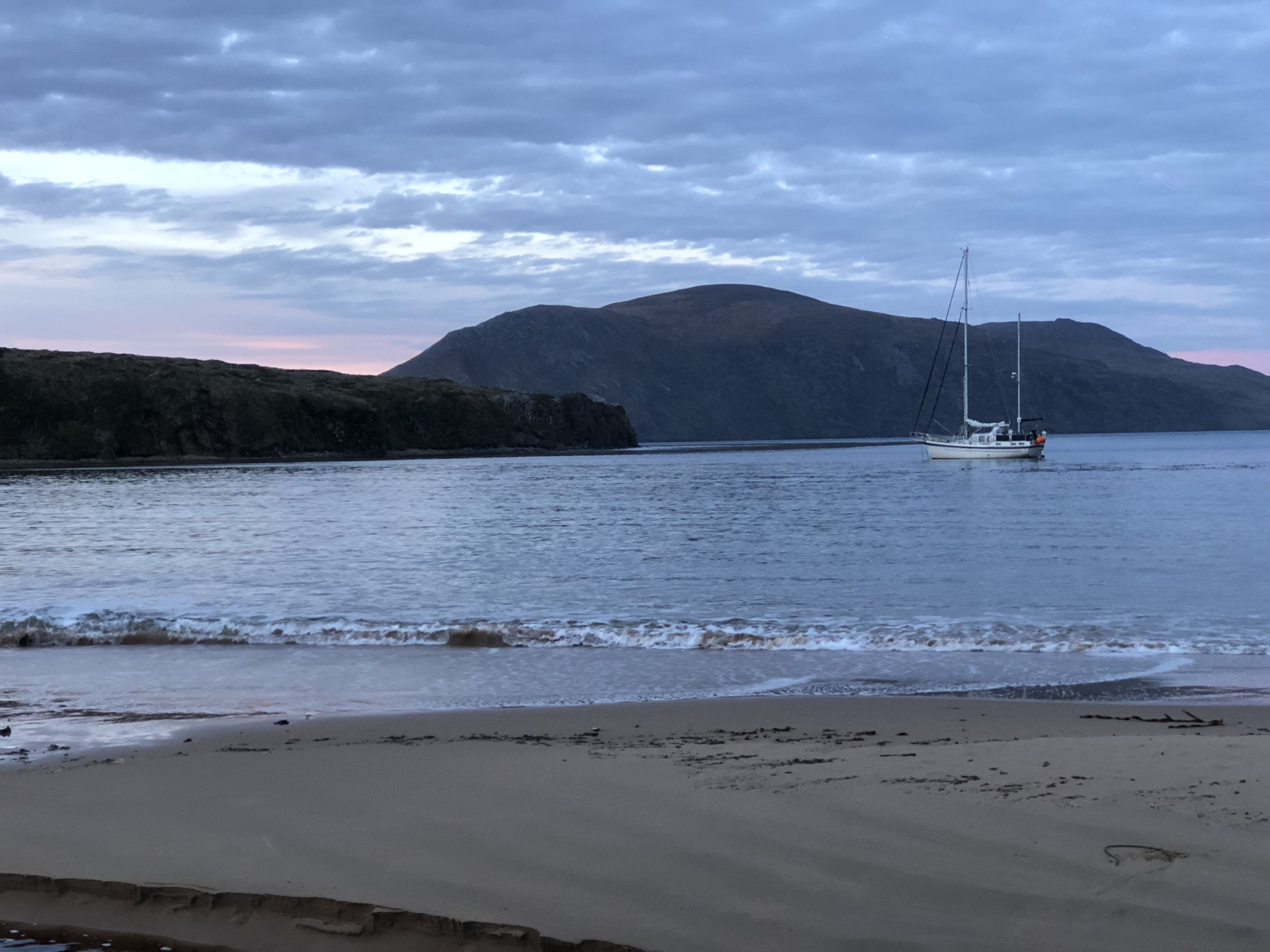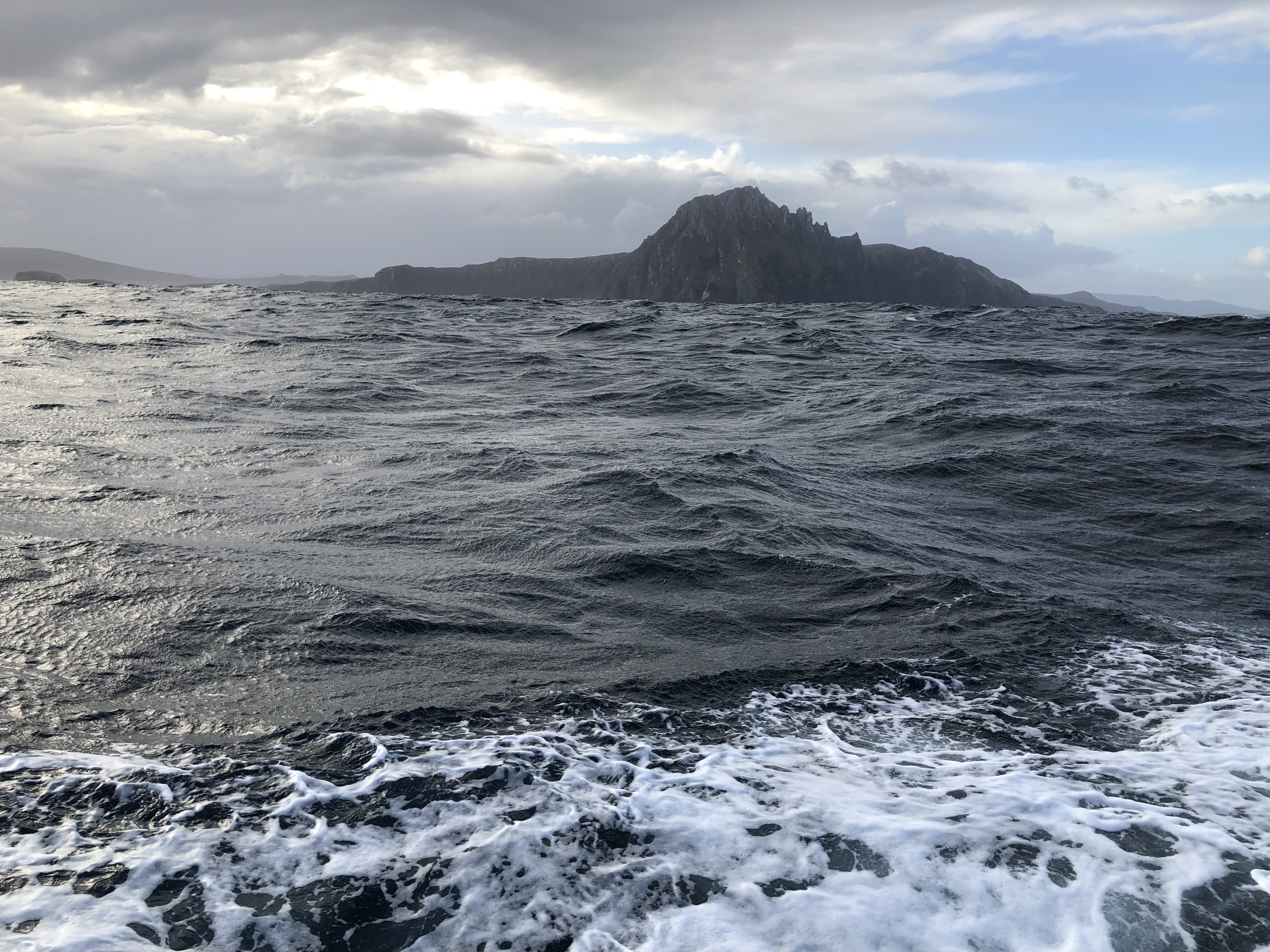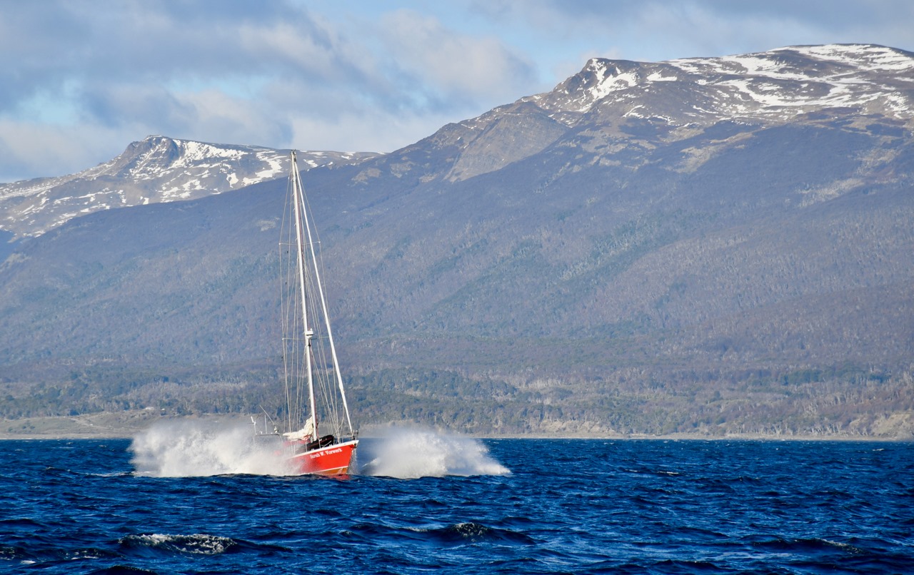 Мягенько идти по 30 узлам ветра после стоянки было труднее, чем после 2 месяцев Тихого океана на 40-45 узлах ветра. Но в целом ура! На хвосте Сары, чей капитан Хэнк давно здесь живет и знает каждый угол, мы дернули, было, к высадке на сам остров Горн поглядеть на постамент с альбатросом и поставить в паспорт крутейшие печати. Но встать на такой волне на якорь с последующей высадкой не вышло даже у большой железной Сары, так что и мы двинули за ними к другой стоянке.