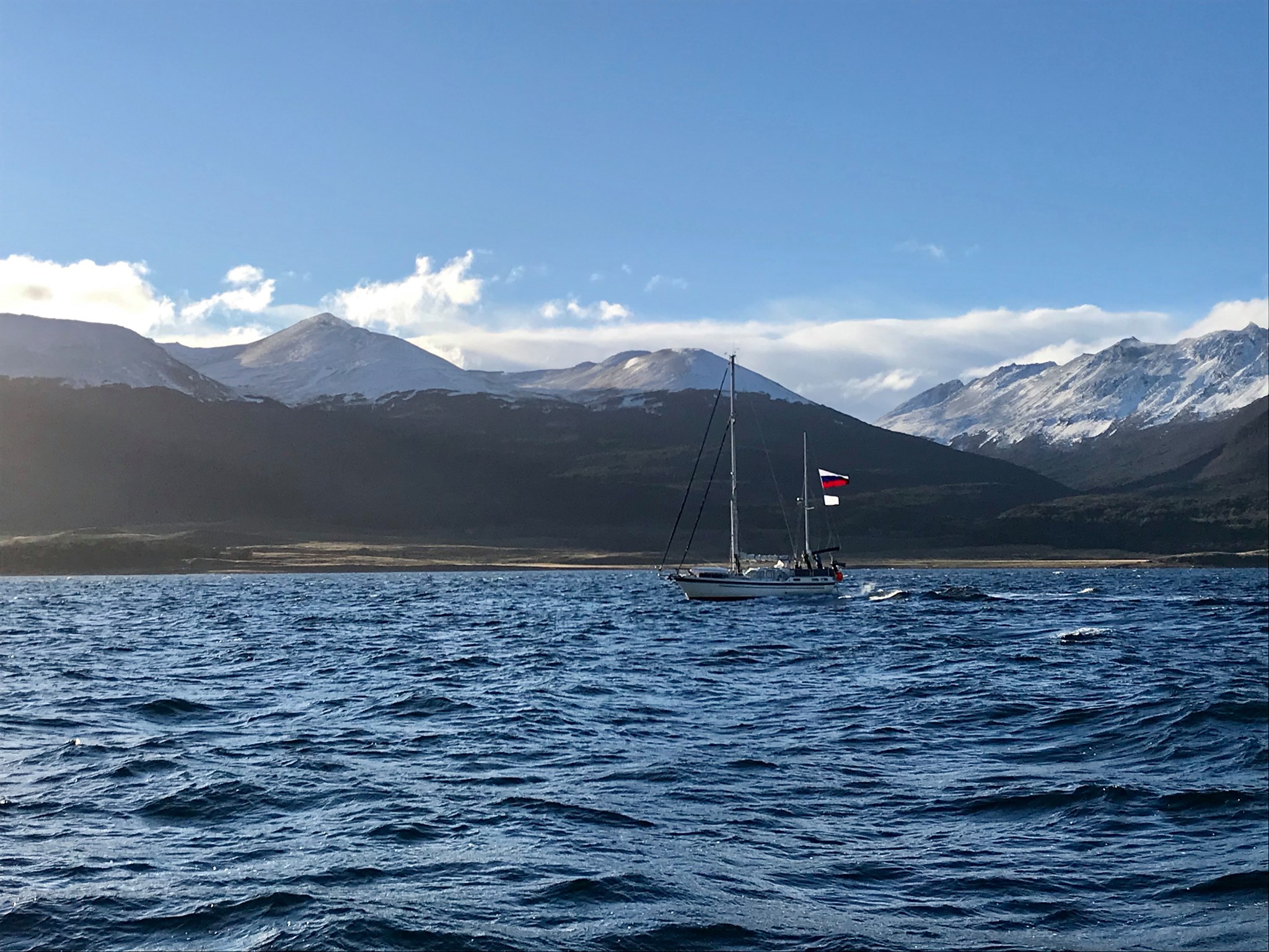 «Но нынче нам нужна одна победа» — пела колонка. Вычислив траектории и прочитав мысли капитанов двух других яхт на расстоянии, мы вышли в пролив Дрейка. И не прогадали. В какой-то момент АИС запищал, что видит цель. Ею оказалась вторая яхта из трех Sarah W Worveik. Ура! возопили мы и схватили рацию. Связь была рваной, договорились по выходу на открытую воду связаться повторно. Курс на Великий Мыс!