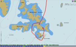 Подходим к защищенной от северных ветров бухте. Красный борт Сары украсился такого же цвета непромами русской команды.