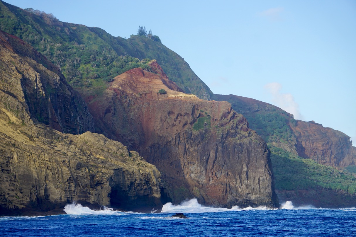 На завтрак у нас целый пир: — какао, йогурты, сыр и фрукты-овощи. Печенюшки и оладьи за переход надоели. Основательно подкрепившись, поднимаем якорь и идем пытать счастья на западном пирсе — втором и последнем месте высадки острова Питкерн. Кружимся между рифов, и Андрюха оптимистично заявляет: