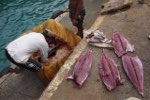 Последний день на Питкерне. Рыбалка по-местному. Национальный праздник — День Питкерна и всеобщая рыбалка на острове Баунти. Сыны Питкерна и вице-мэрши, Джейден и Кимьоро, провожая нас на яхту, сообщают, что завтра остров празднует день Питкерна. В тот самый день в 1767 году 15-тилетний юнга по фамилии Питкерн заметил с корабля Swallow высокий остров. И был страшно горд, когда заросшая джунглями базальтовая глыба получила его имя. Правда то ли от радости, то ли от несовершенства техники остров был нанесен на карту с погрешностью в 188,4 мили. Благодаря этой ошибке мы и разговариваем сейчас с Кимьоро и Джейденом 8-мым поколением потомков мятежников с Баунти. Кто знает, что было бы, нанеси капитан Картерет эту точку на карту верно? Британцы отыскали бы беглецов, отправили всех папаш нации в английскую тюрьму, мамаш на Таити, и не народилось бы на острове ни Кимьоро, ни Джейдена, ни семи колен других отпрысков. Ближе к делу: после такой информации мы, конечно, решаем остаться до завтрашнего вечера рыбалка ммм общий ужин ммм. — Не будем уточнять, кто из экипажа больше любить поесть, а кто порыбачить ))). По рации объявление для всех: с утра коллективный выезд на рыбалку, готовьте снасти. А в 5 вечера объявляется всеобщий дастархан на берегу. .. ,,,,,,,, . ,,,,,,,, .. ,,,,,,,,,, .. ,,,,,,,,,, . .. ,,,,,,,, . ,,,,,,,, .. ,,,,,,,,,, .. ,,,,,,,,,, . .. ,,,,,,,, . ,,,,,,,, Особенности национальной рыбалки 2 июля в половине девятого утра мы связались с островам: — Шарлин, когда выезд на рыбалку? — Вот прямо сейчас. — О, а мы через 7 минут выезжаем, дождетесь? — Давай! Экипаж грузится в тузик в твердой уверенности, что на рыбалку едет только капитан. Мы же планируем отправиться по верхней деревенской дороге, посмотреть, как видят остров Ладины подружки Адриана и Изабел Кристиан, что живут в самом дальнем доме на высоком холме. Еще у меня в рюкзаке ноутбук, он хочет выйти в интернет и загрузить хотя бы один нормальный репортаж на сайт. Но вероятность сего стремится к нулю, влекомая туда скоростью интернета и низкими шансами раздобыть его самоё. На пирсе оживленно человек 20 заняты приготовлениями. Женщины подтаскивают цветные корзины со снастями и перекусом. Мужчины спускают из ангара по рельсам огромную железную лодку с глубоким, закрытым листами трюмом. Девочка Кушана стоит в спасжилете. — Ты тоже едешь на рыбалку? — Да! В эту секунду наша юнга понимает, что и ей страсть, как хочется поехать. Увидев устанавливаемую на лодку скамью, синхронным желанием загорается и Настя. К своему удивлению перед самой отдачей концов в лодку вскакиваю и я. А, к черту ноутбук все равно интернета не сыщешь. И мы мчимся через прибой вокруг острова троллить тунцов )). .. ,,,,,,,, . ,,,,,,,, .. ,,,,,,,,,, .. ,,,,,,,,,, . .. ,,,,,,,, . ,,,,,,,, .. ,,,,,,,,,, .. ,,,,,,,,,, . .. ,,,,,,,, . ,,,,,,,, Помимо нас в лодке 10 человек. Троллинговые снасти спущены с кормы только 2 удочки. Мы гудим мощным мотором метрах в 500 от берега. Битый час никто не зарится на силиконовых кальмаров, тянущихся за нами. А вот совсем рядом рыба выпрыгивает из воды прямо в клювы кружащих олушей и фрегатов. Несколько раз мы вспарываем рыбий суп своим мотором, но добыча упорно не желает глотать металл. Снова встаем на курс по окружности острова, и тут лодка вдруг резко сбавляет ход, а мэр начинает быстро крутить катушку. Вот он, первый, у борта. Ловкий взмах крюка в руках Кимьоро и рраз! И жирный тунец отправляется в короб для рыбы. Судно 