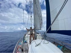 Сегодня первый день за 2 недели нет дождя. Жара, выявлен косяк в еще одной солнечной панели, висящей на том же борту, который задело штормом. Электричество в дефиците. Хорошо, что опреснитель не надо запускать, он бы съел весь заряд. Баки полны дождевой воды, до отмеченной точки выше экватора 555 миль, потом еще тысячи полторы до Таити. Старший матрос изучает навигацию. Юнга под руководством старпома учит части речи. Надо не ударить в грязь лицом перед школой, когда доберемся до связи (предположительно через месяц). Кстати, в связи с очередным локдауном нам снова приходят вопросы о том, где учится юнга. Рассказать в следующий раз о дистанционном обучении в Географической школе апостола Андрея Первозванного? Всем здоровья. Передано через спутник из 7*56южной широты и 159*20западной долготы P.S. Вчера мы не смогли выйти на связь, поэтому вчерашний пост выходит сегодня. С тех пор приключений добавилось: снова в ночи лопнул фал генуи и отказала помпа пресной воды. Ура, полет нормальный! Благодарим вас, друзья, за ваши комментарии и письма на сайт, за то, что болеете за нас. И отдельное огромное спасибо за осязаемые подарки команде и капитану, присланные на Yoomoney и Paypal . Пусть сбудутся ваши мечты. Где мы сейчас Смотрите на нашем сайте travely-family.com во вкладке Маршрут. Там пишется путь Леди Мэри с трекера Рокстар Иридиум 360 компании МВС Телеком.