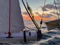 Вчера приходили дельфины, крупные, бодрые и прекрасные. Они скакали и ныряли у самой яхты, пока не наскучило. Что касается рыбалки, то последние дни треск удочки вовсе не означает возникновение сашими и стейков на обед. Потому как на нашу наживку клюют только гиганты. Они выматывают метров 200 лески, борются с капитаном, кто сильнее, а потом мощным рывком из-под корпуса яхты уходят в синюю бездну, оставляя нам обрывок лески. Предпоследним был тунец килограммов на 30, а последнего мы даже не увидели. Только удочка выгнулась дугой, а потом -хлоп! и ослабла. Скоро будет как в переходе Атлантики стоимость утраченных снастей превысит стоимость рыбы, которую на них поймали. Но капитан не теряет надежды и снова закидывает удочку. Раз уж за 3 дня три монстра унесли в океан три лучшие наживки, старпом решила разговеть всю семью тайским зеленым карри. И бухнула этого карри к жареным овощам, грибам и имбирю столько, что глаз вырвет даже у капитана, который обожает острое. Ароматы по яхте витают божественные, но к трапезе прямо боимся приступать. Репорт вот писать села, только бы отсрочить час расплаты.