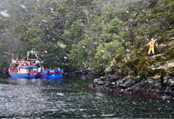 Укрытие для рыбаков. Штормование в рыбацкой бухте. Что за подушки рассыпаны по склонам, как уединиться, если все время вместе. Флора и устройства для ловли крабов. Кто в экипаже главный водовоз и добытчик мидий. . .. .. .. .. .. .. .. .. .. .. .. .. .. .. . .. .. . .. .. .. .. .. .. .. .. .. .. .. .. .. .. .. .. . .. .. .. .. .. .. .. .. .. .. .. .. .. .. .. .. . .. .. .. .. .. .. .. .. .. .. .. .. .. .. .. .. . .. .. .. .. .. .. .. .. .. .. .. .. .. .. .. .. . .. .. .. .. .. .. . .. .. .. .. .. .. .. .. .. .. . На входе в бухту Эмилита нас встречает фигура рыбака в желтом костюме. Пенопластовое лицо и рука с копьем, бутафорский такой гарпун и настоящий фонарь на солнечной батарее. Это первая во фьордах бухта, посещаемая не только яхтами. Ручей падает в залив в двухметровой высоты. Холмы с бансаями по левую руку и непролазная тайга по правую. Надо успевать десантироваться на берег. Рассмотрели сложенные штабелями краболовки и сняли видеоэпизодик с юнгой в роли ведущей эксперта по ловле морепродуктов. Соберем вместе с обзором ловушек для лобстеров с острова Пасхи, рыбалку присуропим из архивов, будет бальзам на душу гурманам-мореманам. На этой стоянке погода еще радует, штормяга придет после. Наверх забираешься по моховым кочкам, нога будто идет по мягкой мебели бархату диванных подушек и кресел, переложенных корягам и стволами. По-моему, южная Патагония чемпион мира по разнообразию мхов и войлочных растений разной степени пушистости. На таком зеленом фоне, едва тает тонкий слой снега, трудно разглядеть суровый лик зимы. Кажется, что это просто так круто лето не задалось, в лесотундре этой. Днем по-прежнему 0 плюс 5, ночью заморозки. . .. .. .. .. .. .. .. .. .. .. .. .. .. .. . .. .. . .. .. .. .. .. .. .. .. .. .. .. .. .. .. .. .. . .. .. .. .. .. .. .. .. . . .. .. .. .. .. .. .. .. .. .. .. .. .. .. . .. .. . .. .. .. .. .. .. .. .. .. .. .. .. .. .. .. .. . .. .. .. .. .. .. .. .. . В эту вылазку среди красивых кочек, украшенных аккуратным изогнутым деревцом в японском стиле даже Ладуня щебетала меньше обычного. Всем симметрично захотелось единения с природой. Матрос и юнга пошли на одну горку, мы с кэпом на другую. Шептались с листьями поодиночке. Солнце шекотнуло снежный край горы и провалилось. Мы одновременно собрались обратно в кучу. Интересно, что всем заскучалось по домику и ужину минута в минуту. Еще к слову о флоре среди мхов и ягодных кустиков появились какие-то сопли, грибы, видимо. Ну натурально, клейстер неаппетитных цветов переваренной пищи, поразвешенный среди мха. Склизкий и скользкий, что это? . .. .. .. .. .. .. .. .. .. .. .. .. .. .. . .. .. . .. .. .. .. .. .. .. .. .. .. .. .. .. .. .. .. . .. .. .. .. .. .. .. .. . . .. .. .. .. .. .. .. .. .. .. .. .. .. .. . .. .. . .. .. .. .. .. .. .. .. .. .. .. .. .. .. .. .. . .. .. .. .. .. .. .. .. . Ночью периодически завывает, но как-то в отдалении, не перескакивает ветер за нашу горку. Спать под одеялами тепло, хоть по утрам в лодке по-прежнему 5-6 градусов жары. Правда, приходится долго валяться из-за позднего рассвета и медленного нагрева жилых помещений. Читаю до упора, юнга приходит обниматься. А нынче капитан из рубки безапелляционно так, вместо Доброго утра, заявил, -Мариночка, ты же у нас яманская женщина? А вы с какой целью интересуетесь? -говорю. -Да отлив сейчас, сгоняй-ка за мидиями, -предложил наш убежденный вегетарианец. -Нуу, эээ.. .. ммм.. .. Дождь со снегом больше вдохновляют на какаао перед телеком, чем на мокрую шлюпку и выдергивание ракушек из заиндевевшего берега. Хорошо, юнга у нас легка на подъем. Решили с ней ждать окна в погоде, на низком старте попивая какао. Уже начался прилив, как раз как стих дождь. В надежде, что